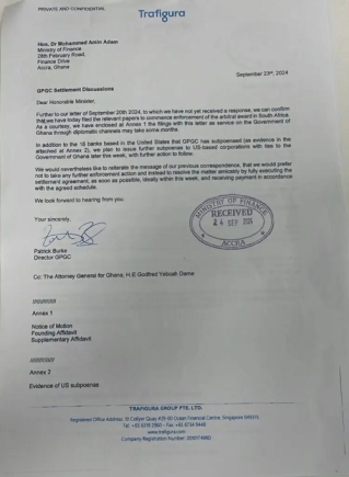 In a letter addressed to the Minister and dated September 23, 2024, Trafigura urged the government to finalise the settlement this week to avoid further legal action, emphasising their preference for an amicable resolution.