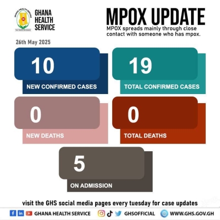 The Ghana Health Service (GHS) has confirmed 10 additional cases of Mpox, increasing the national total to 19.