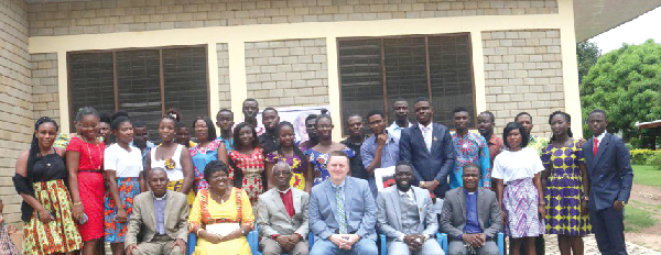 Mr Travis Rutland (seated 3rd right), Founder of Global Servants, and Reverend Samuel Odarno(3rd left), the West African Director, Trinity Foundation Ministry , and the wife, Mrs Comfort Odarno(2nd left), in a group photograph with some dignitaries and teachers of the school.