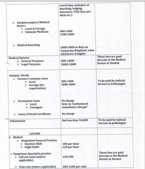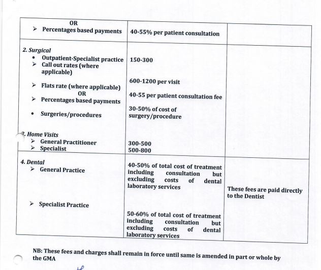 The letter from the GMA said, “the stated professional fees are the actual payments (money) to be given to or received by the Medical Doctor or Dentist irrespective of whatever collection procedure (with or without administrative charges) put in place at the facility or institutional level.”