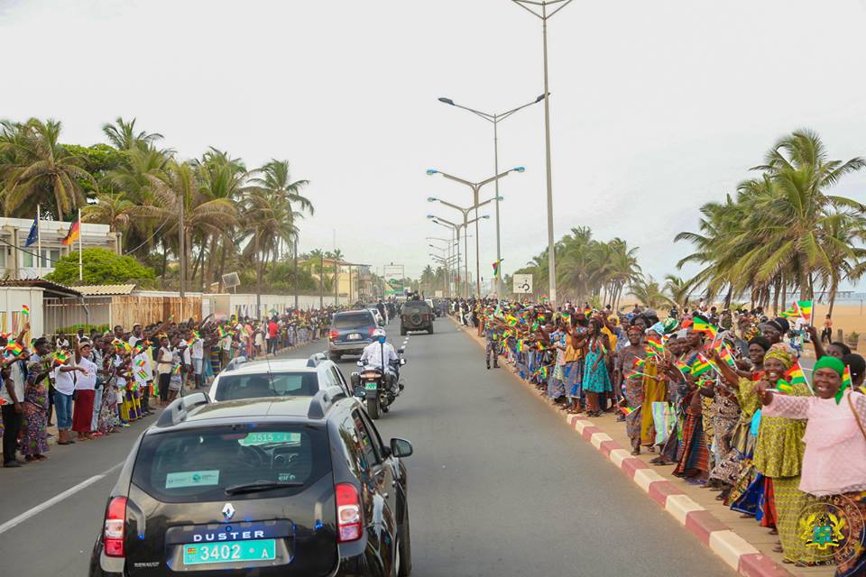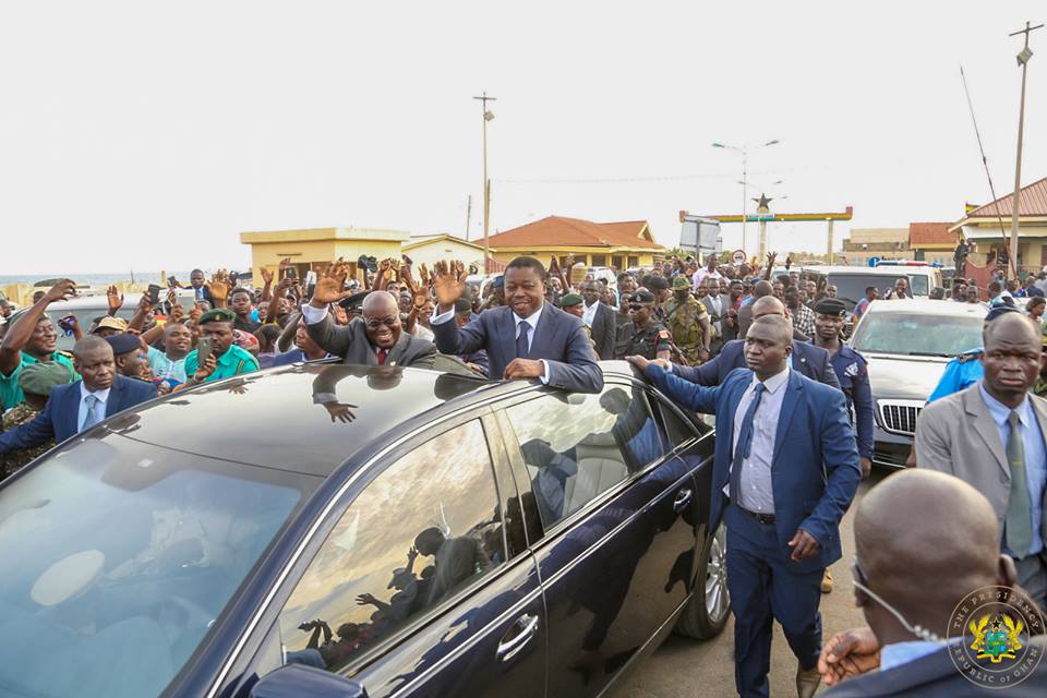President Akufo-Addo, who made the trip to Togo by road, was met at the Aflao border by the Togolese President, His Excellency Faure Essozimna Gnassingbé, together with hundreds of Ghanaians and Togolese who had lined up along the principal streets of Aflao en route to Lome.