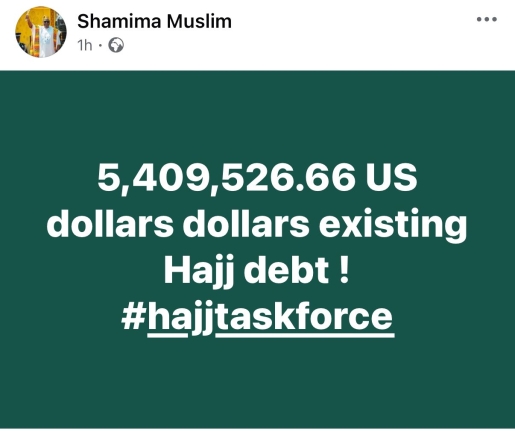 She further disclosed that despite the reduction, the current administration has inherited an outstanding Hajj debt of over $5.4 million.