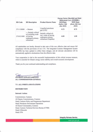 “Your cooperation is vital to the successful implementation of this critical revenue measure, which is essential for Ghana's energy sector stability and overall economic development,” the statement emphasised.