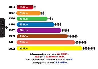 Estimates from the Ghana Statistical Service and the UNFPA Population Institute suggest that by 2030, Ghana’s population will reach 37.5 million.
