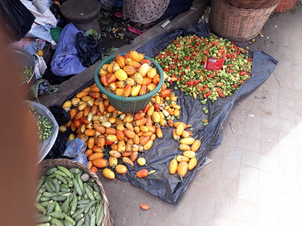 Fresh vegetables such as cabbage, garden eggs, tomatoes, carrots, and kontomire were also seen displayed on dirty onion sacks next to open drains as the market women called out for buyers.