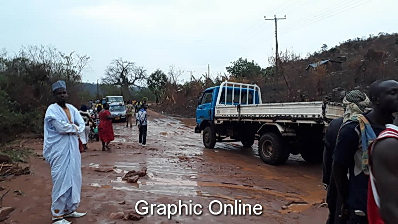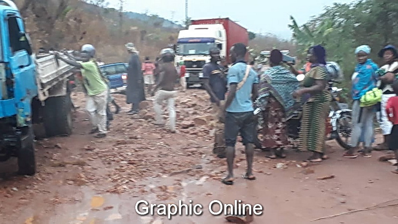 According to Graphic Online correspondent George Danso, even four-wheel drives that attempted maneuvering the treacherous road, which has developed huge sinkholes and bears sharp, pointed stones which were used as part of the bed of the road, ended up getting stuck in mud.