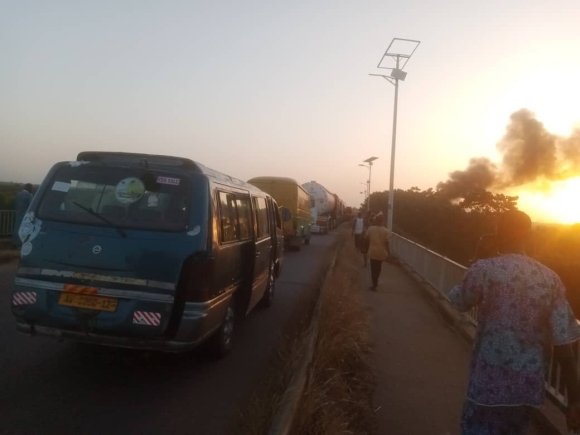 A vehicular accident involving two heavy duty trucks caused traffic on the Yapei bridge on the Tamale - Kintampo highway on Saturday evening.