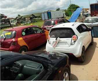 The situation has resulted in a spill over of vehicles stretching up to the tollbooth area.