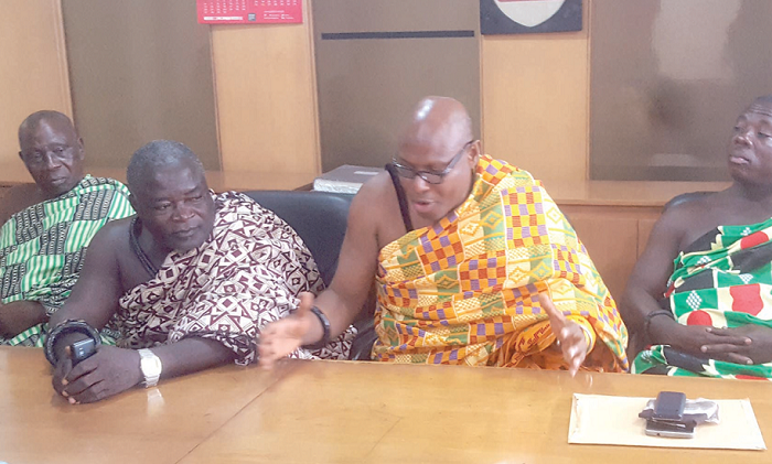 Nana Opinamang (2nd right) addressing the meeting with Mr Ashigbey. Those with him are some of his sub-chiefs