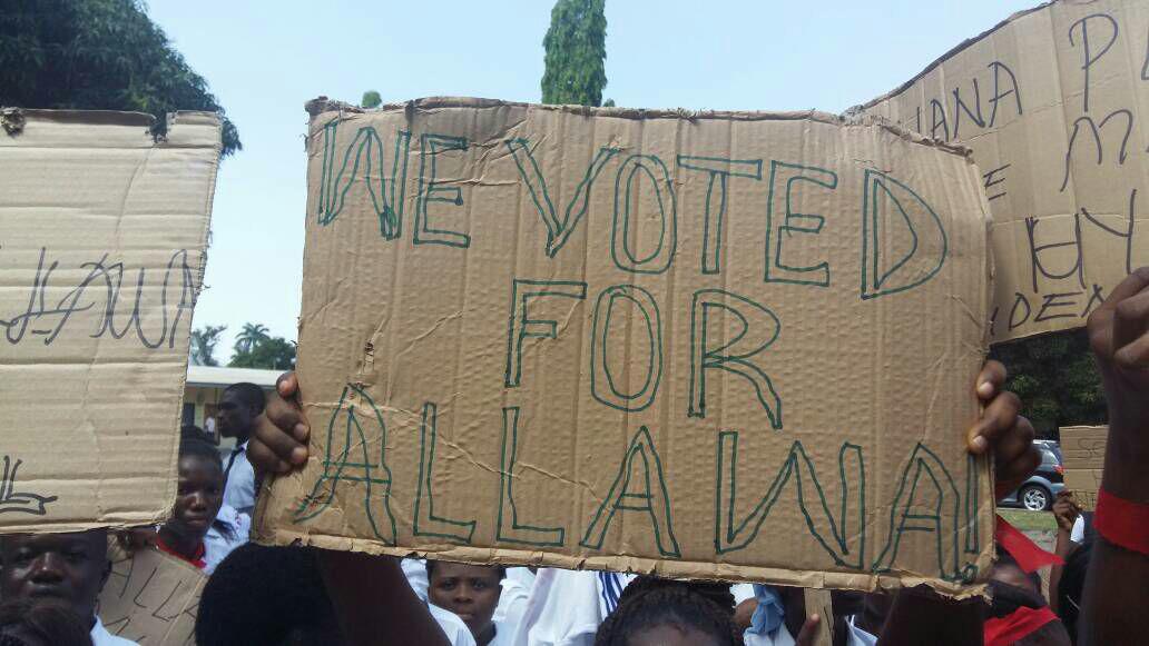 “During the campaigns last year, Nana Akufo-Addo told us in Accra that, if we help him to come to power, he will restore the allowances of all health trainees not just nursing and midwifery trainees. So we’re shocked with this selective restoration. We as hygiene students are also part of the health trainees in this country,” one student told Graphic Online during the protest march.