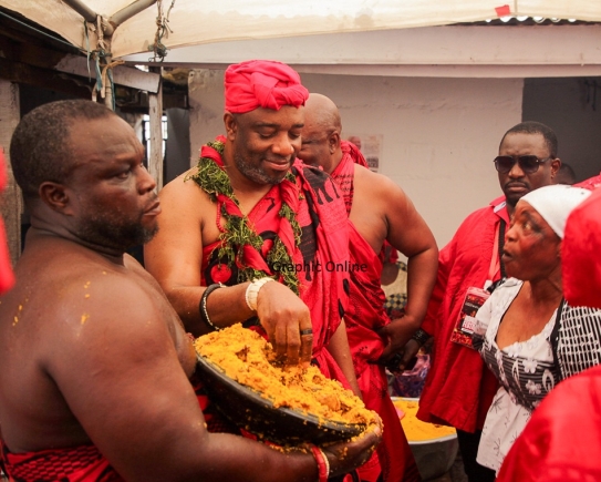At the heart of the event was the Ga Mantse, Nii Tackie Teiko Tsuru II, who performed the sacred sprinkling of kpokpoi across the 21 houses that make up the Ga stool.