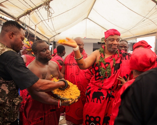 As tradition demands, the Gbese Mantse, Nii Ayi-Bonte II, led the way from his palace, sprinkling kpokpoi through the principal streets of Ga Mashie through to Ussher