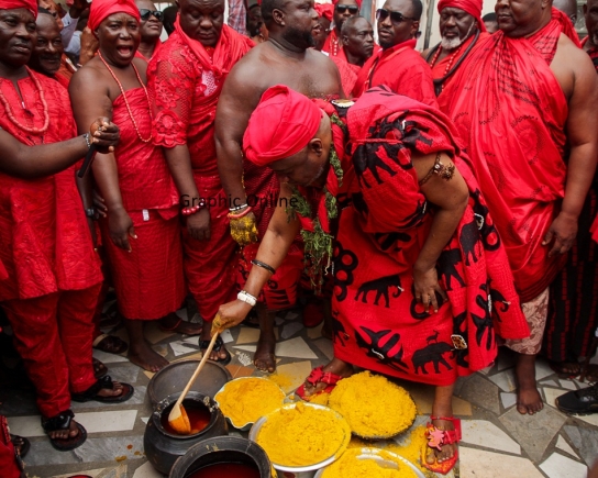To climax the festival, traditional rulers lead processions to sprinkle kpokpoi at specific locations.
