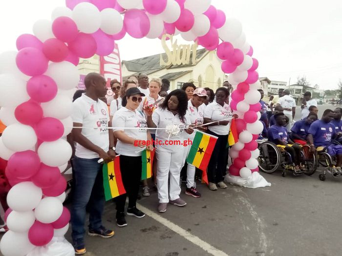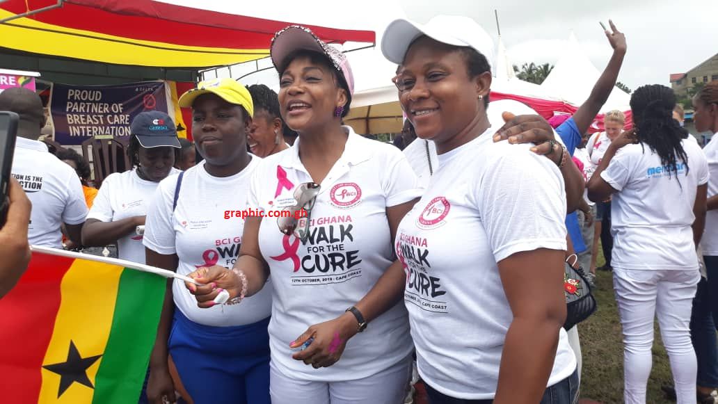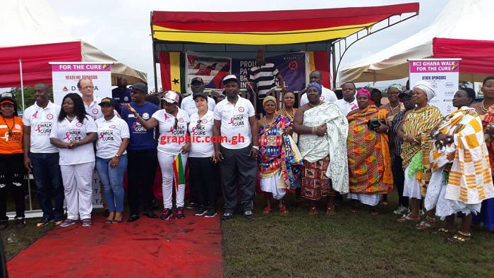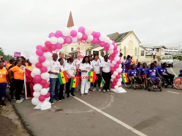 The Central Regional Minister, Mr Kwamena Duncan, a former Minister for Gender, Women and Children Affairs, Madam Otiko Afisa Djaba, the President of the Central Regional House of Chief, Obrempong Krampah, the Paramount Chief of Cape Coast, Osabarimba Kwesi Atta II and the President of Breast Care International (BCI), Dr Mrs Beatrice Wiafe Addai joined the walk.