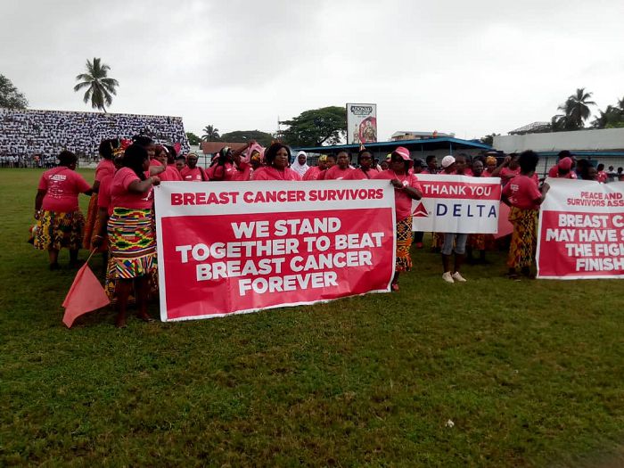 Despite the intermittent rains, patrons walked through the principal streets, educating people on the need for self-examination and to report breast abnormalities to health facilities early.