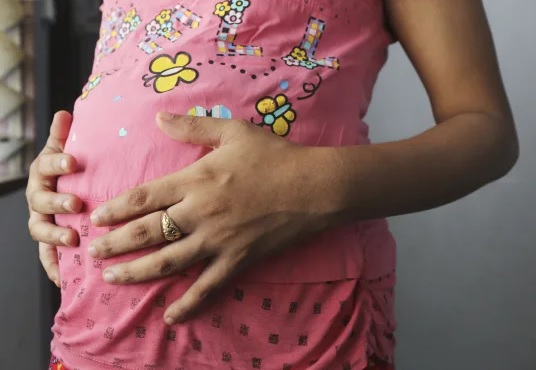 Another girl, 16-year-old S, enters the bedroom. Her swollen belly strains against her pink T-shirt, which is adorned with hearts and butterflies.
