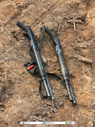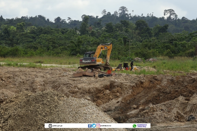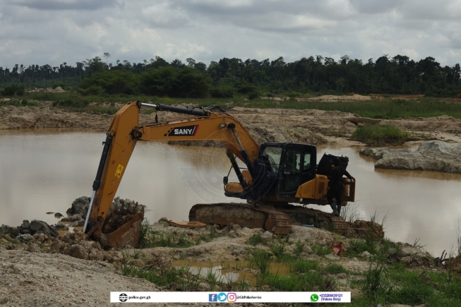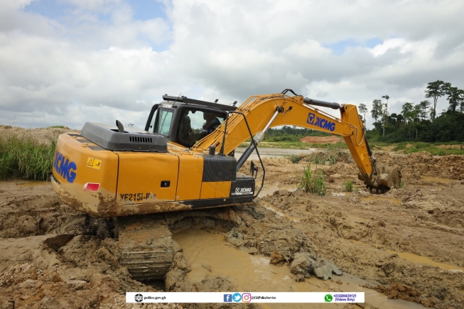 Exhibits retrieved from the site include two (2) pump-action guns, pumping machines, four (4) excavator machine monitors and eight live BB cartridges. Efforts are underway to move the excavators from the forest to the police station.