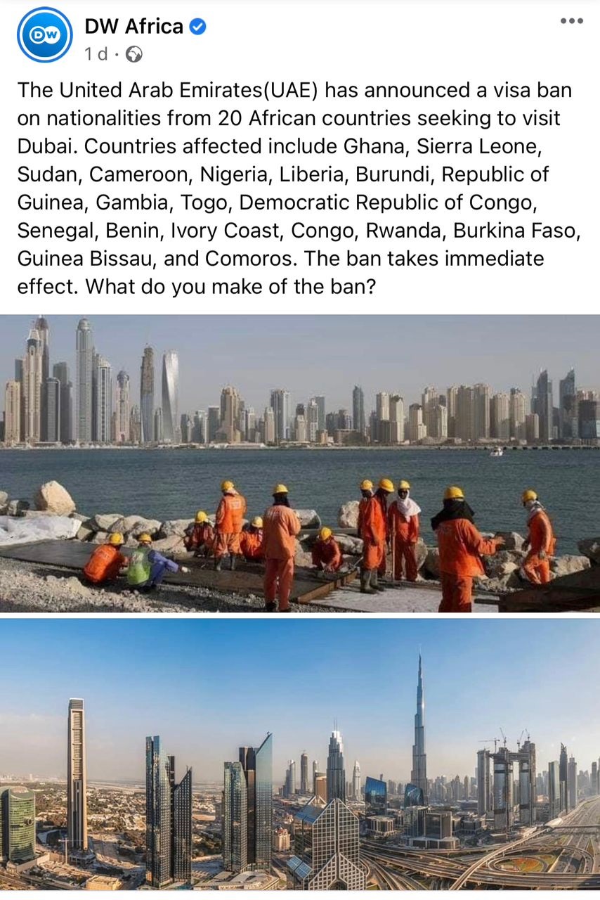 Related: List of 19 African kontries UAE ban from entering Dubai on 30 day visitor visa