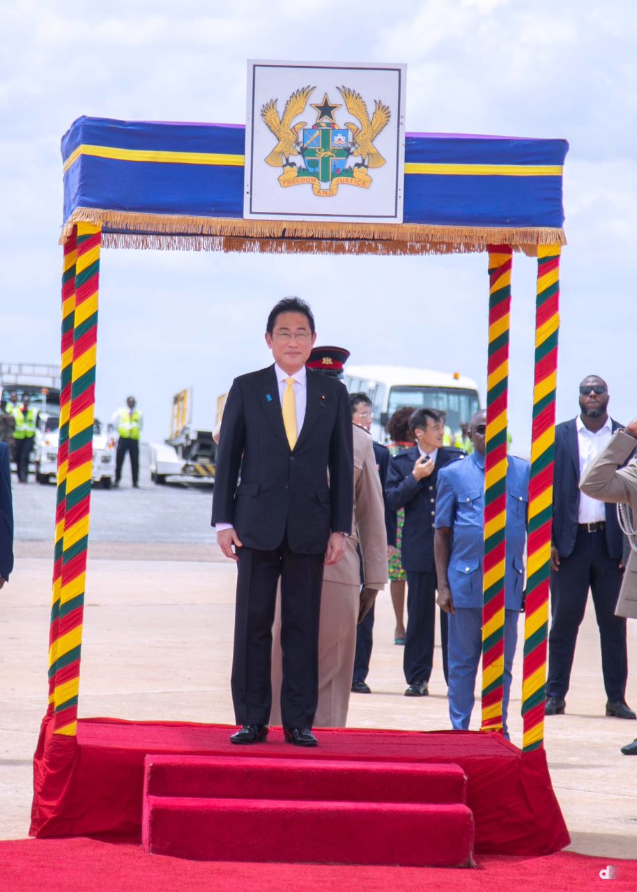 The Japanese Prime Minister Fumio Kishida arrived in Accra on Monday afternoon for a day's visit to Ghana.