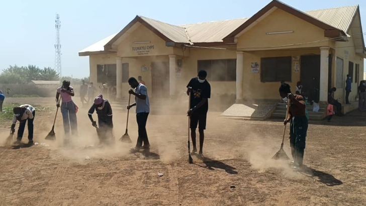 Located in Kanvili-Tuunayilli, the students have launched a community clean-up campaign to promote environmental hygiene and public health awareness. Equipped with brooms, rakes, and determination, they cleaned the Tuunayilli Chief’s Palace and the area’s Community Health Planning and Services (CHPS) Compound — two vital public facilities serving hundreds of residents.