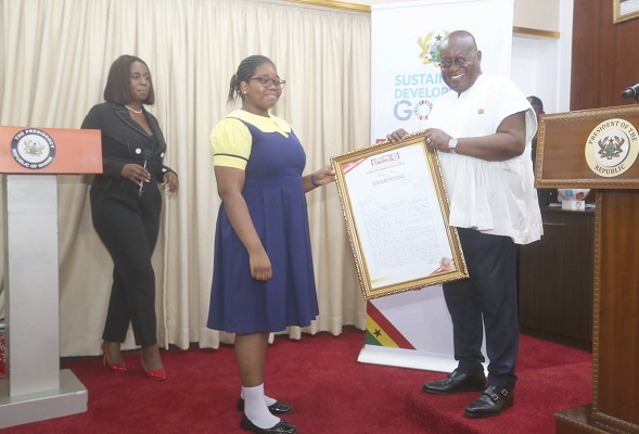 President Nana Addo Dankwa Akufo-Addo last Monday presented awards to the 10 finalists of the Junior Graphic National Essay Competition (JGNEC) on the Sustainable Development Goals at the Jubilee House.