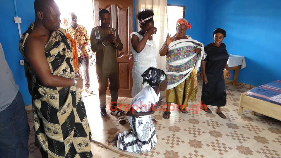 Land was provided by the Odikro of the village, Nana Bobbie Ansah II and the construction of a sandcrete bed-seater detached house was started by Kessben Foundation to give the poor woman a more decent accommodation.