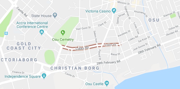 The Lokko Road (Rd) is highlighted on the google map above (Google Maps)