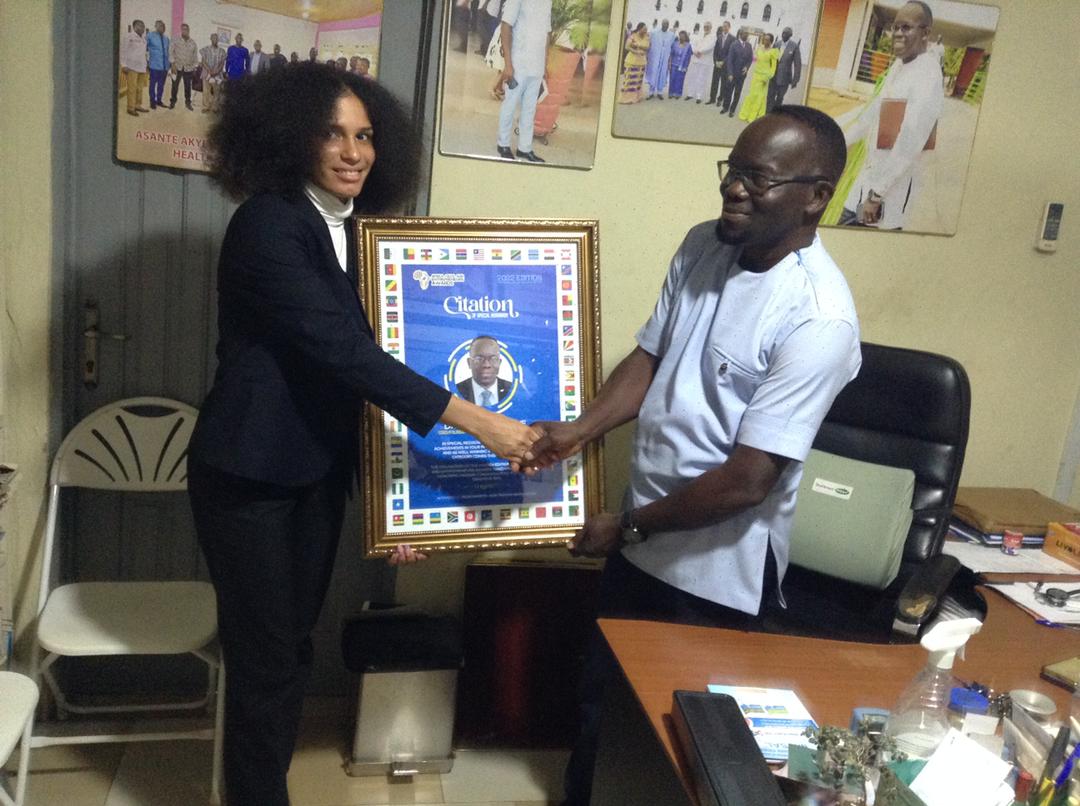 The secretary of the Ghana Association of the ACEA Ms. Faith Ayacha presenting the citation to Dr. Ogbordjor noted that, the selection of the awardees were done upon proper vetting procedures from awards board.