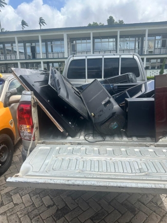 Items retrieved from the suspects included multiple laptops, tablets, and mobile phones wristwatches, television sets, WiFi routers and three vehicles including Kia Morning and two Toyota Corollas cars with registration numbers GX 4388-19 and AS 4777-22.