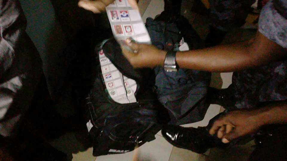 After a search they found three bags containing thousands of thumb printed ballot papers, which had been thumb printed for President John Mahama.![]()