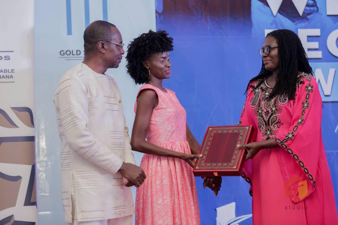 PHOTO: Benedicta Esi Brew Monney receiving her award as the Best Female Journalist