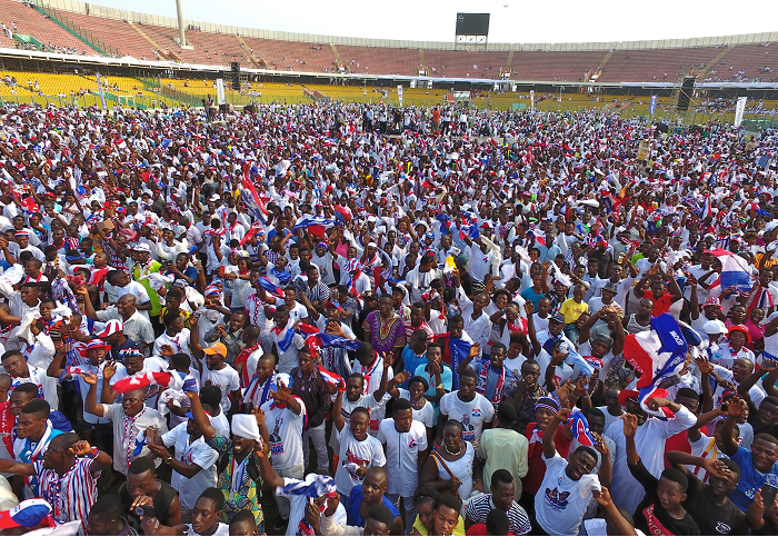 Some supporters cheering Nana Akufo-Addo up at the ceremony in Accra. Picture: SAMUEL TEI ADANO