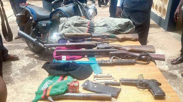 Some weapons and implements retrieved from some armed robbers arrested by the Police