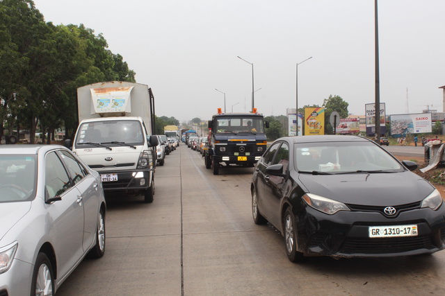 Each of these stops had some sort of a heavy vehicular traffic, but the Accra end of the Motorway was special. Traffic built up all the way to the Manet area, beyond one’s view, with a good number of them being taxis and trotros.