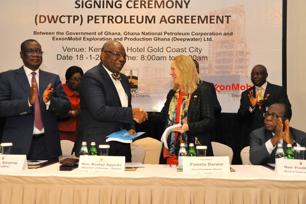 The Minister of Energy, Mr Boakye Agyarko, signed for Ghana, while the Vice-President for Africa, ExxonMobil, Madam Pamela Darwin, initialed for the global oil giant.