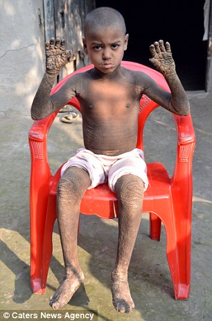 Pediatrician Dr Mohammad Emdadul Haque said: 'He was brought to us for treatment. The patient is suffering from a rare kind of skin disease.