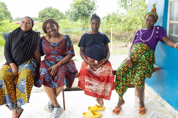 Isata Dumbuya, the director of reproductive health, with expectant mothers at the Wellbody clinic in Kono