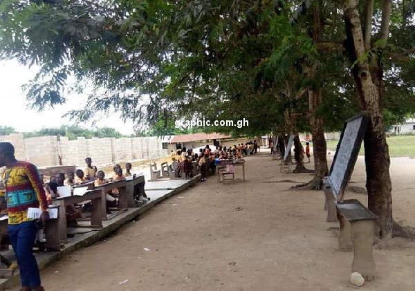 The over 400 pupils of the Meretwiso Basic School have been learning under trees and are also exposed to the vagaries of the weather and dangerous reptiles for two years now.