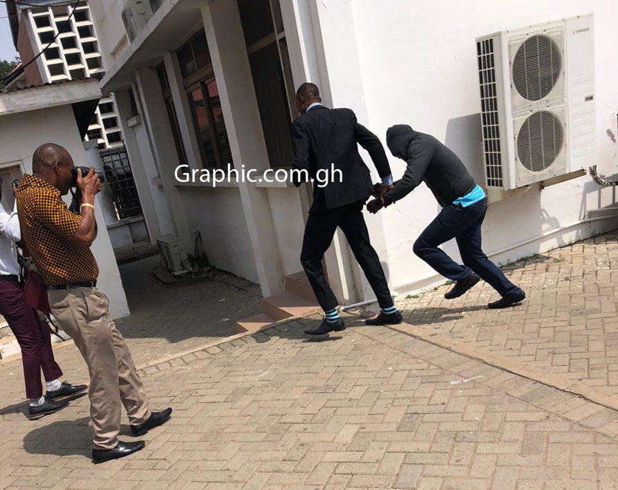 Skalla was captured in a viral video assaulting 36-year-old, Patience Osafo, whilst she was carrying a baby at the Shiashie branch of Midland Savings and Loans.