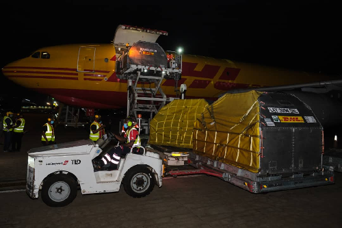 The latest delivery, made up of 27 palettes of vaccines from Cologne, Germany, arrived via global logistics giant DHL, which provided a cargo plane to ensure safe and fast delivery.