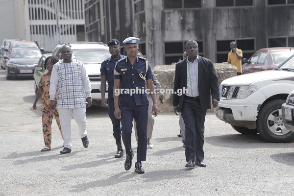 ACP Dr Benjamin Agordzo (middle), arriving at the Kaneshie Magistrate Court. Picture: EMMANUEL ASAMOAH ADDAI