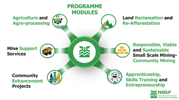 The other modules under NAELP are agriculture and agribusiness, apprenticeship and entrepreneurship, responsible, viable and sustainable small-scale mining, also known as community mining, as well as mine support services.
