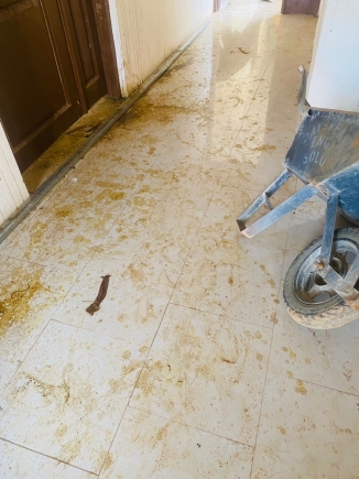 Apart from the floor, the walls and ceiling of the hall were covered in the stuff.