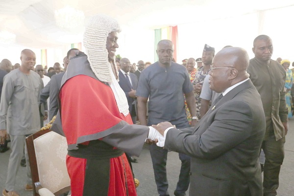 President Nana Addo Dankwa Akufo-Addo congratulating Justice Anin Yeboah (left), the Chief Justice of the Republic of Ghana.
