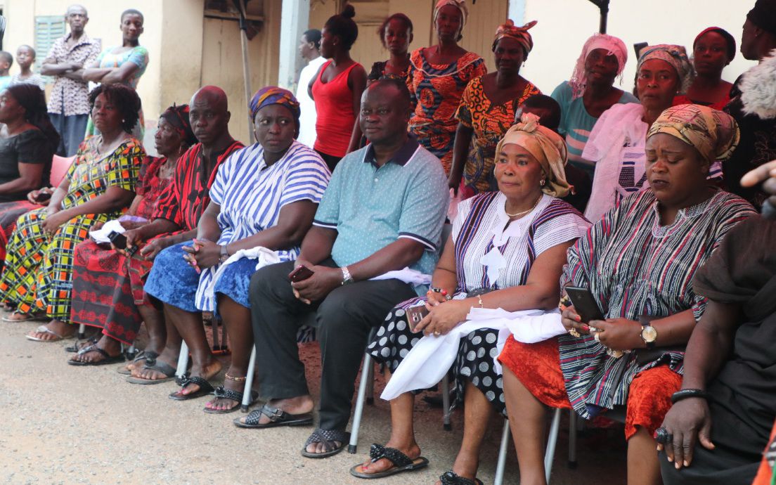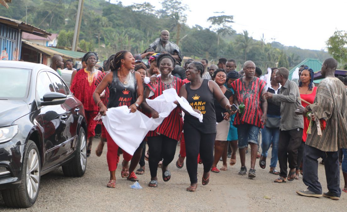 Before he was carried on the shoulders of the men of the Asafo Company, the women in the crowd, who were singing, dancing and twirling white calico, sprinkled white powder on the new chief.