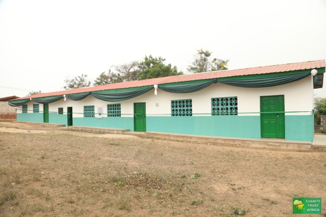 The Three-Classroom Block and an office has been refurbished by Charity Trust Africa and also provided with fifty (50) Children’s Tables and replaced Black Boards with White Boards for the classrooms.