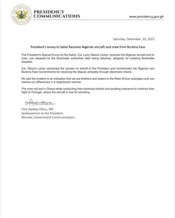 The Nigerian crew will remain in Ghana to rest, conduct technical checks, and await clearance to continue their flight to Portugal, where the aircraft is scheduled for servicing.