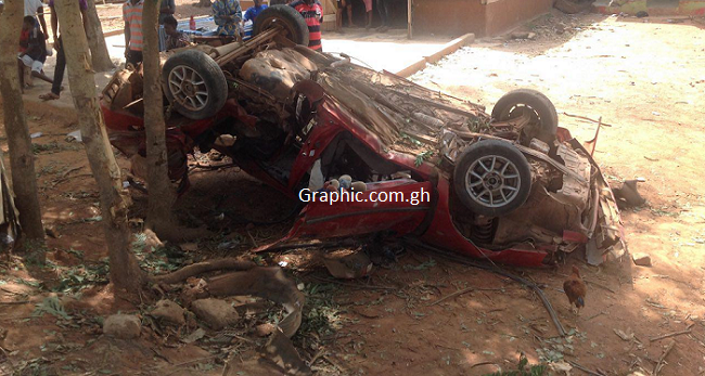 On reaching the Glamossey Hotel Junction at Abesim, the driver is said to have lost control of the steering wheel, somersaulted and hit a number of trees and a culvert before eventually landing on its roof at about 12.10 a.m.
