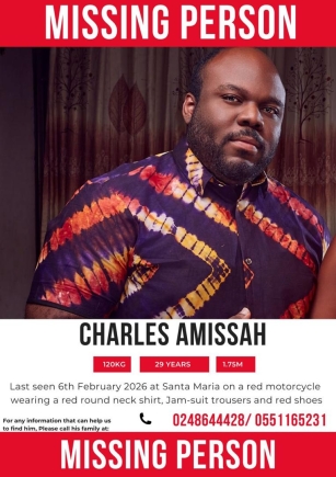 "Last seen 6th February 2026 at Santa Maria on a red motorcycle wearing a red round neck shirt, Jam-suit trousers and red shoes," the family wrote on a poster shared on social media, indicating that their relative Charles Amissah was missing.