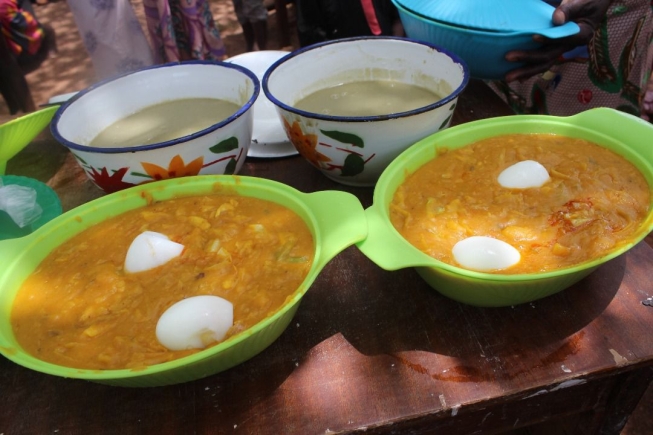 At one of the sessions, facilitators led participants through the preparation of yam porridge, a popular local dish. Using locally sourced and affordable ingredients such as yams, palm oil, onions, tomatoes, pepper, dried fish, eggs, dawadawa, and greens like bitter leaf and moringa, the women learned simple ways to improve the meal’s nutritional value.